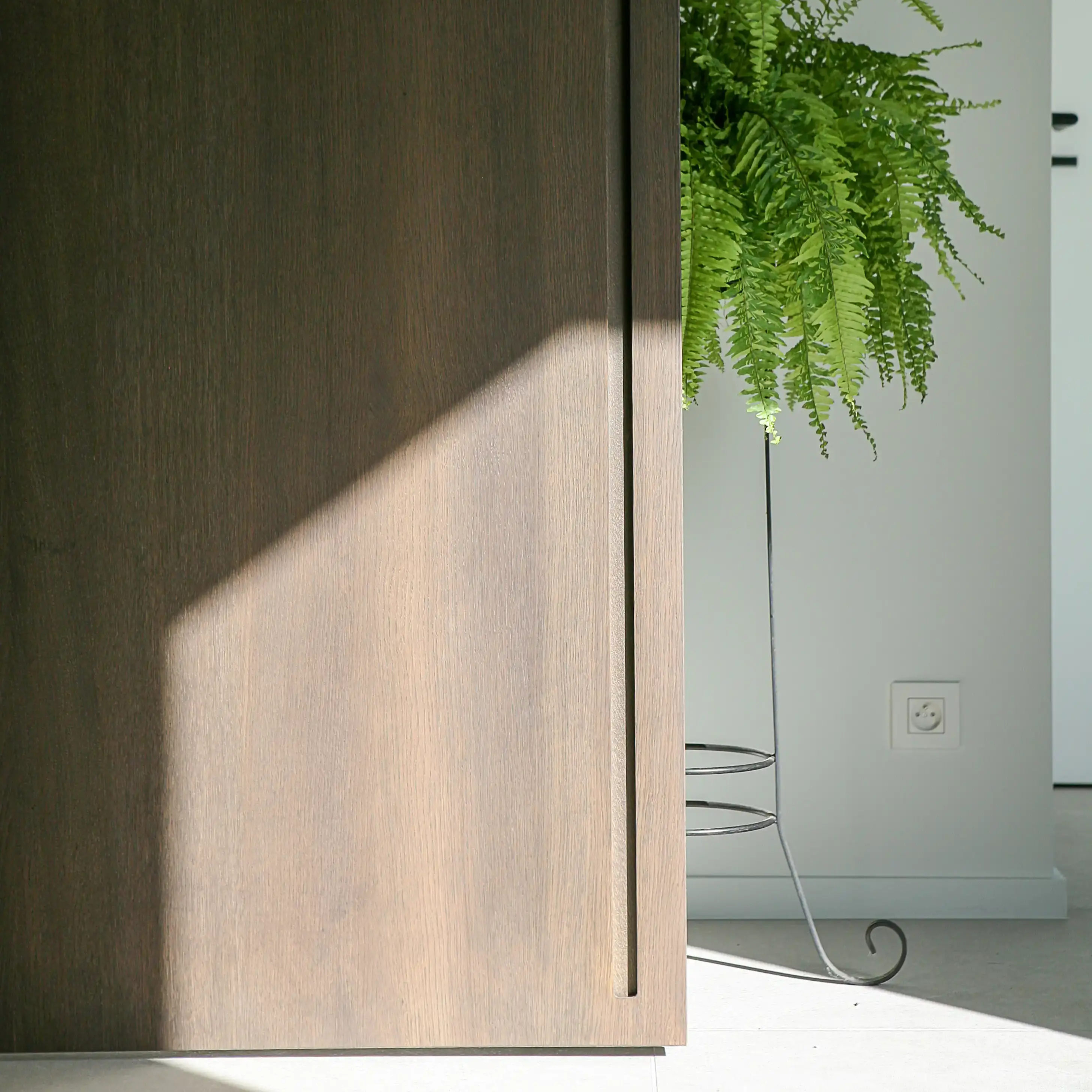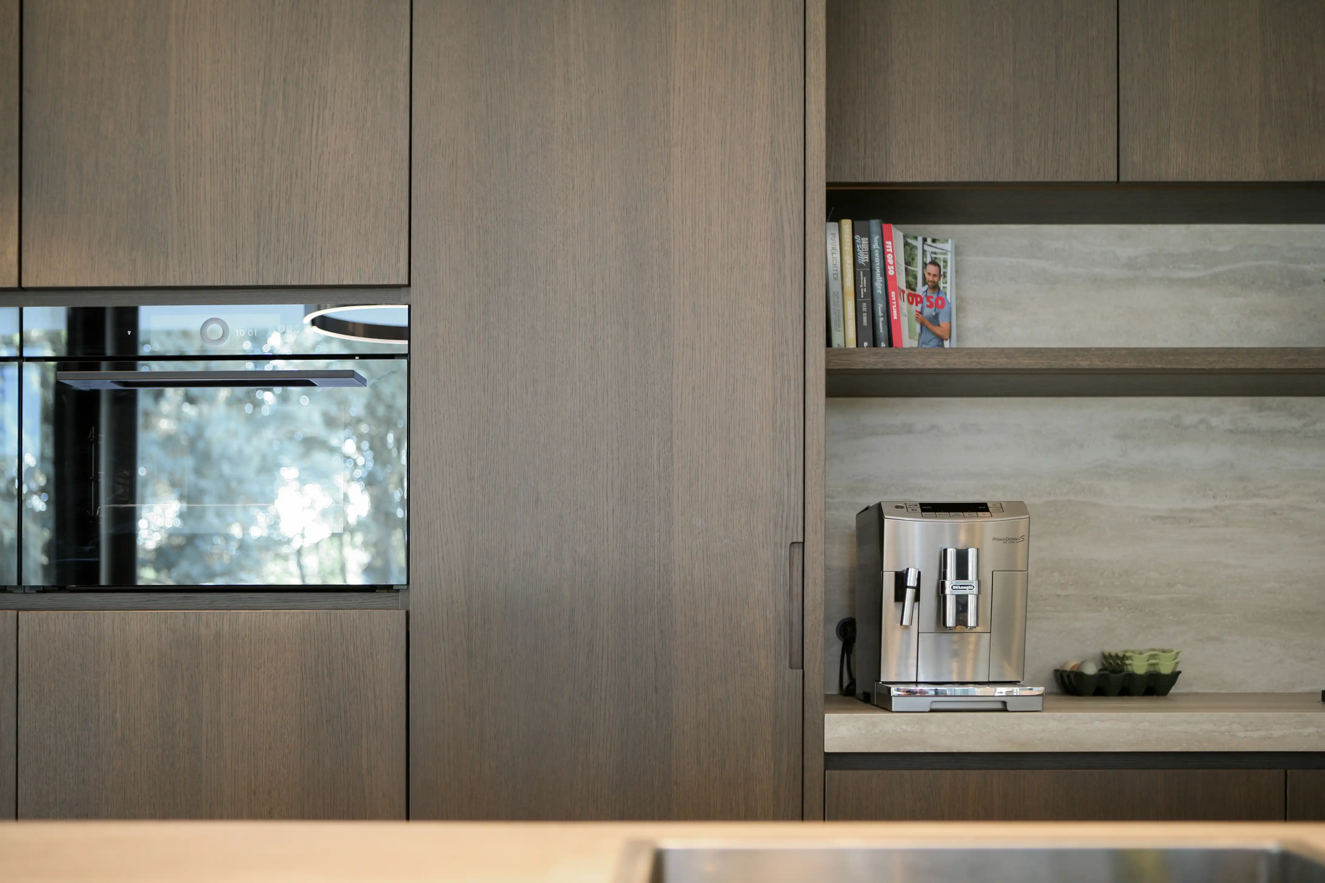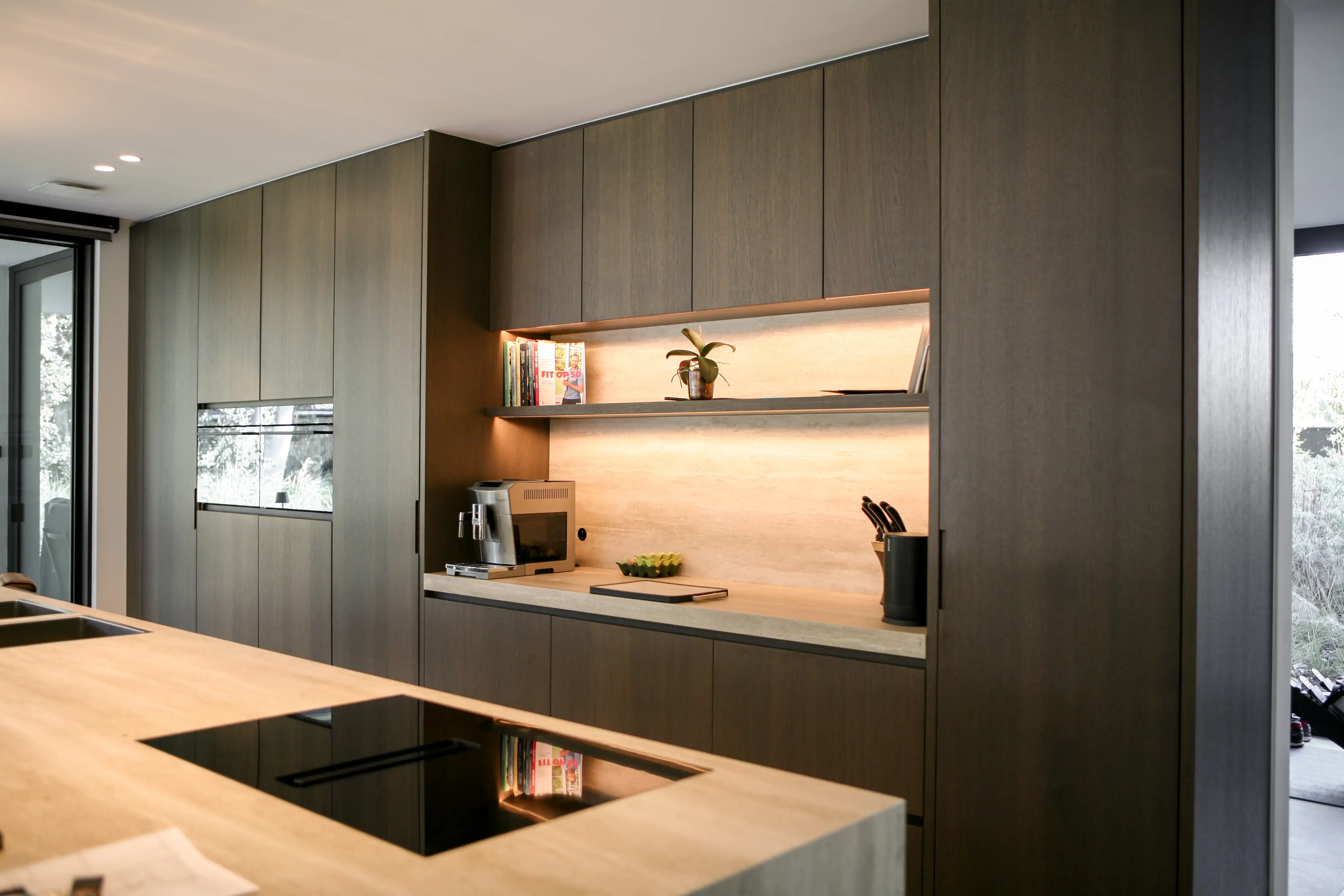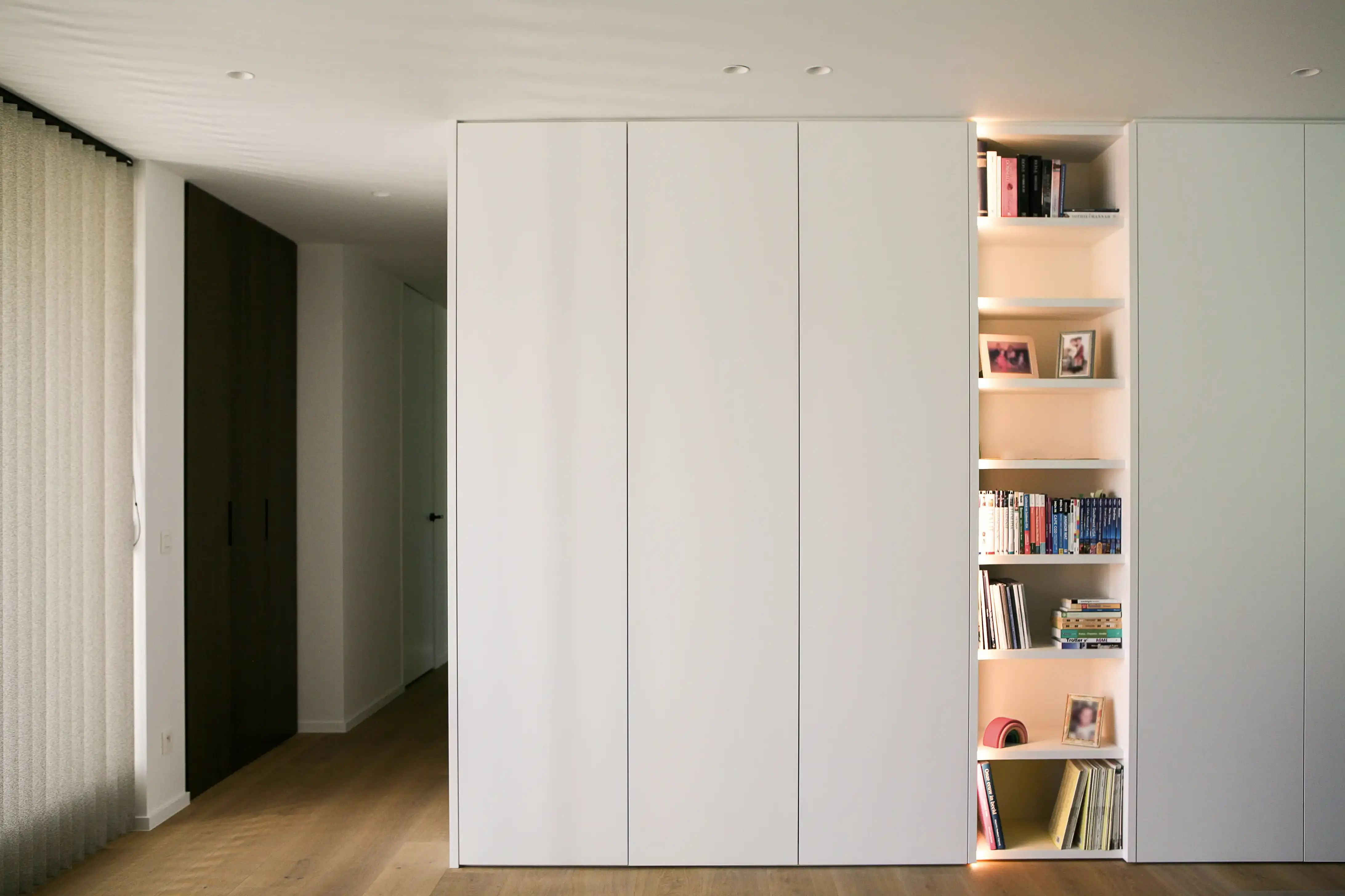 Geen snelle beslissingen, maar doordachte keuzes. Subtiel ingewerkte grepen. Geïntegreerde verlichting. Een pivotdeur die geruisloos opent. Het zijn die details die maatwerk het verschil laten maken.